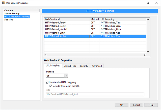 Et bien, on peut choisir ! En faisant un clic droit sur le Service Web dans le projet puis en allant dans Propriétés on obtient tous les paramètres voulus dans la section HTTP Method VI Settings: