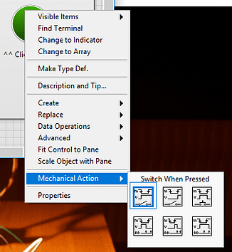 L’utilisateur pourra jouer avec les différents types d’actions mécaniques pour contrôler le moteur (clique droit sur un bouton) :