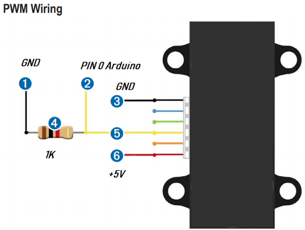 Figure 6 Schéma de câblage du lidar en acquisition de mesure en PWM (d’après datasheet Gramin)